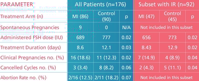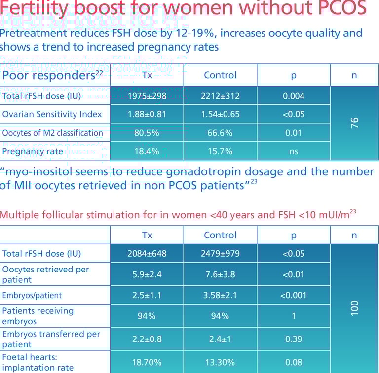 A prospective, controlled, randomised trial among 196 sub-fertile women with PCOS assessed the benefits of myo-inositol pretreatment in ART outcomes. The results demonstrated positive biochemical changes leading to highly significant improvements in clinical outcomes.